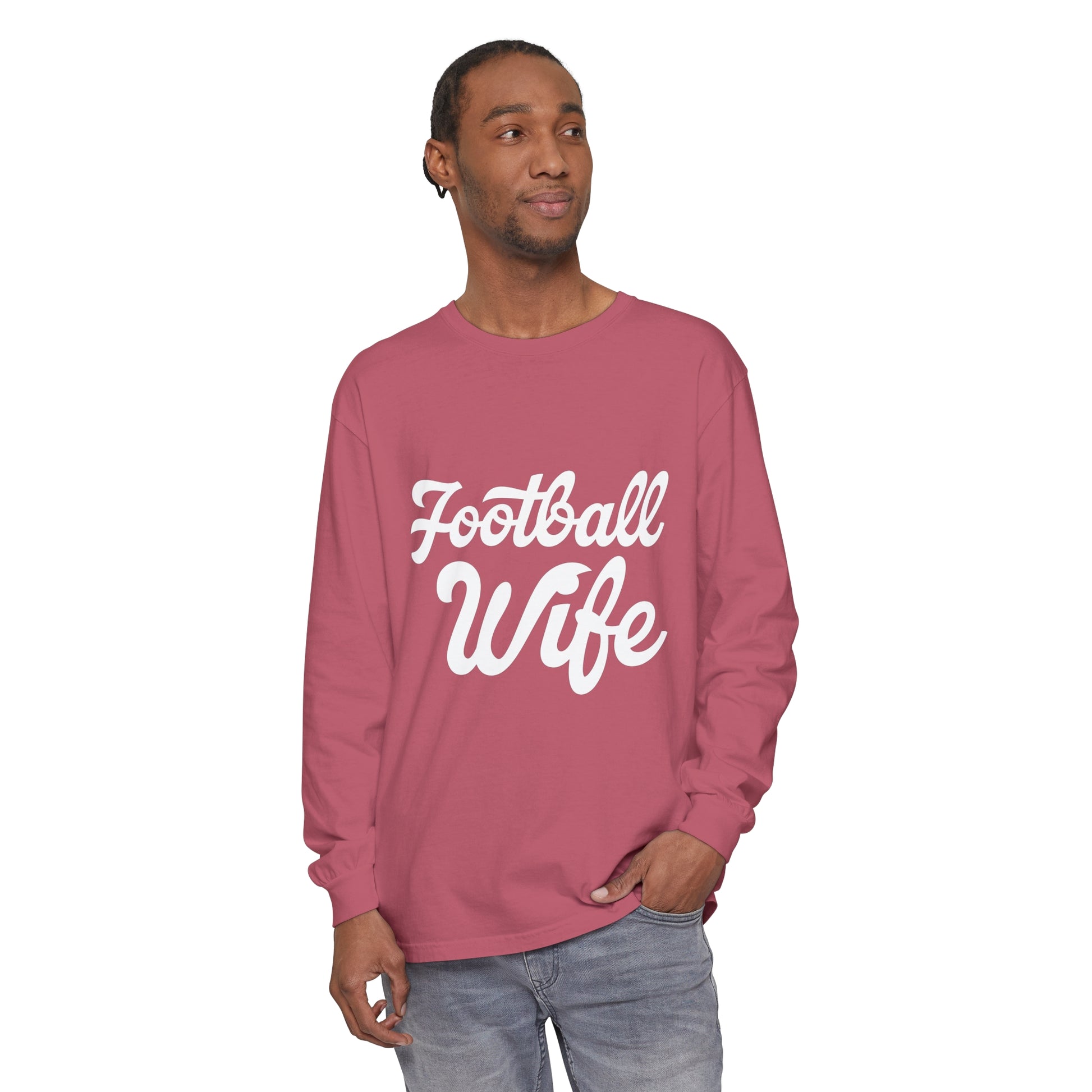 Football Wife White Unisex Garment-dyed Long Sleeve T-Shirt